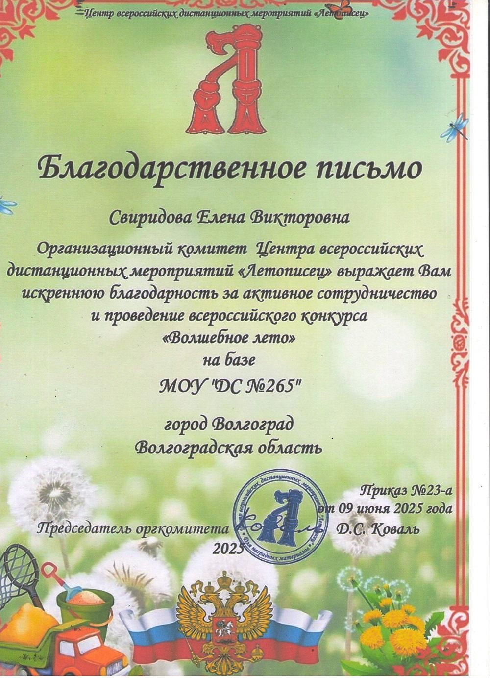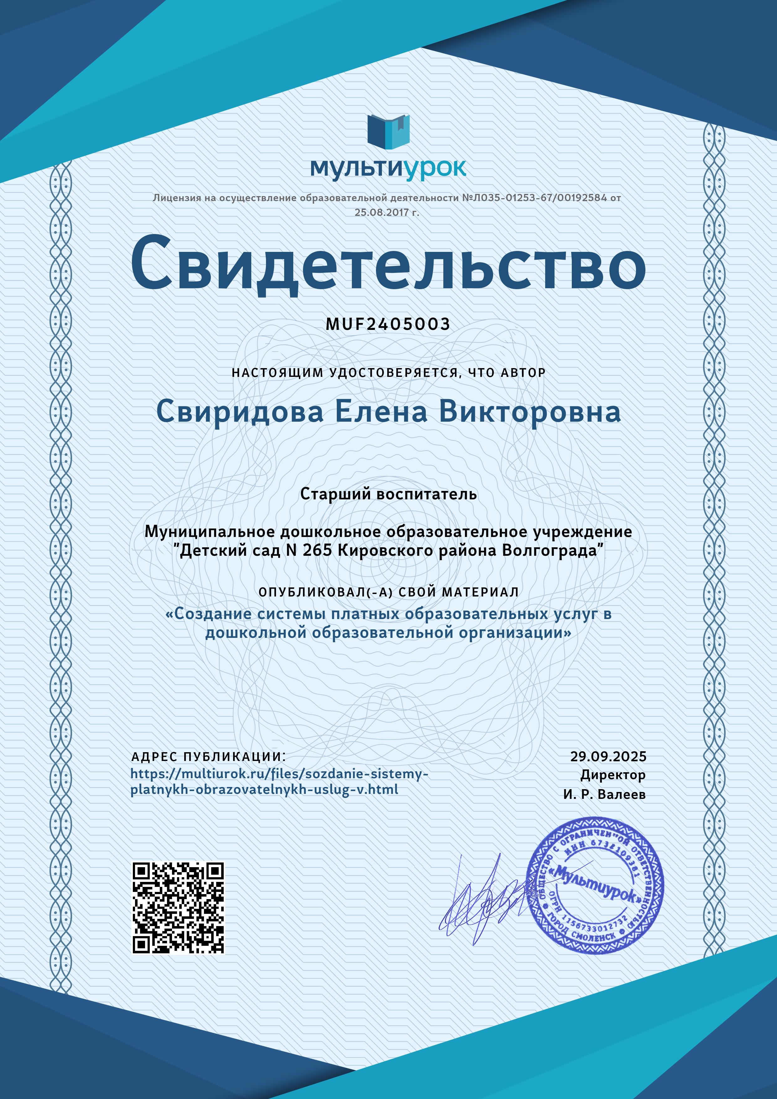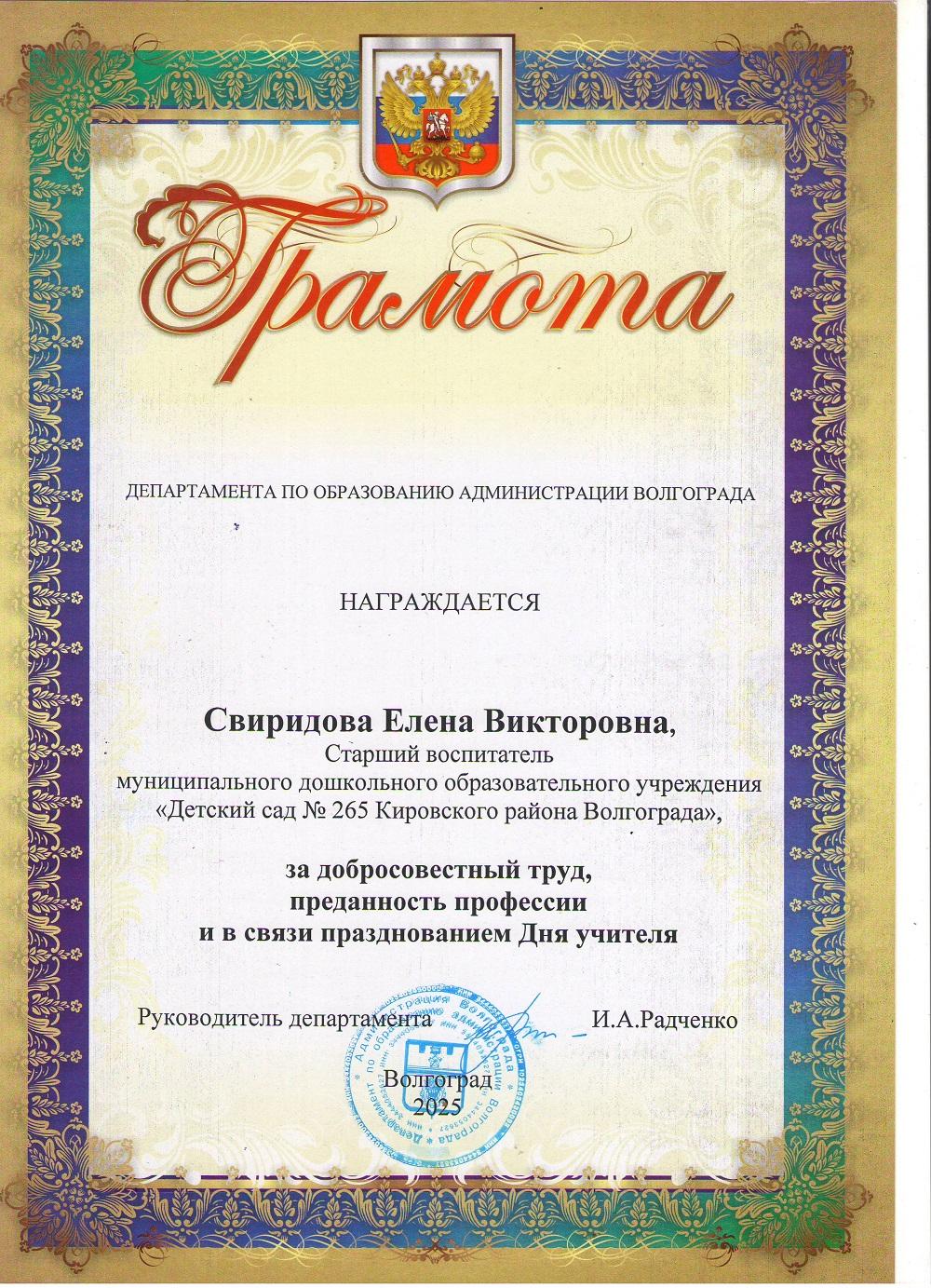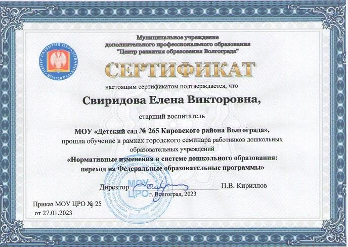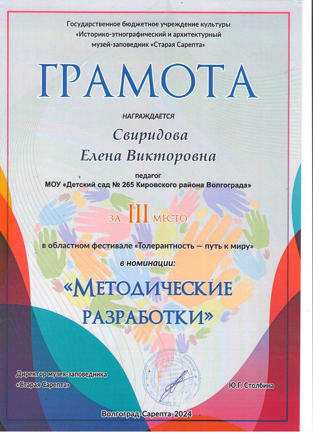 Личная страница старшего воспитателя Свиридовой Елены Викторовны