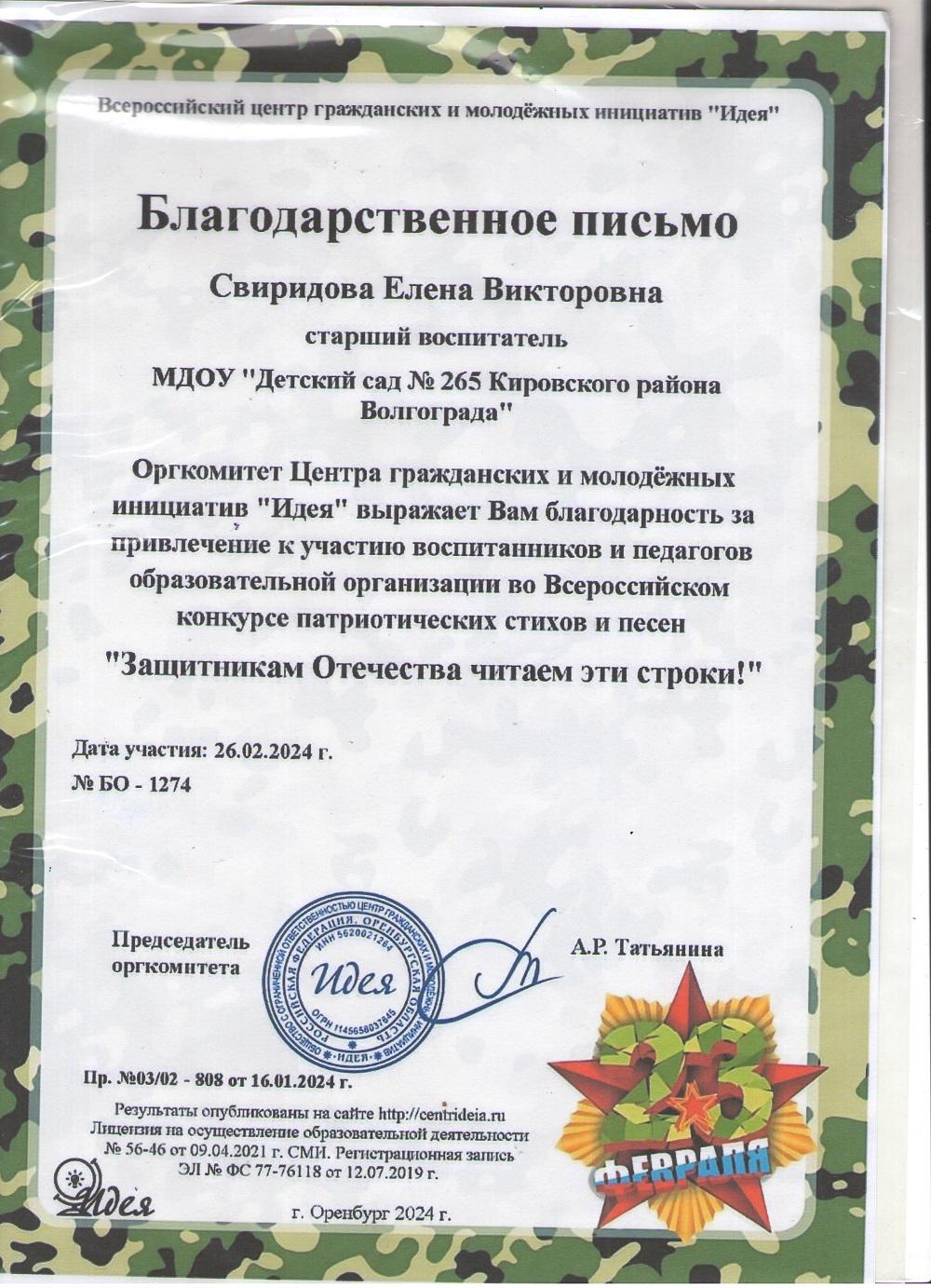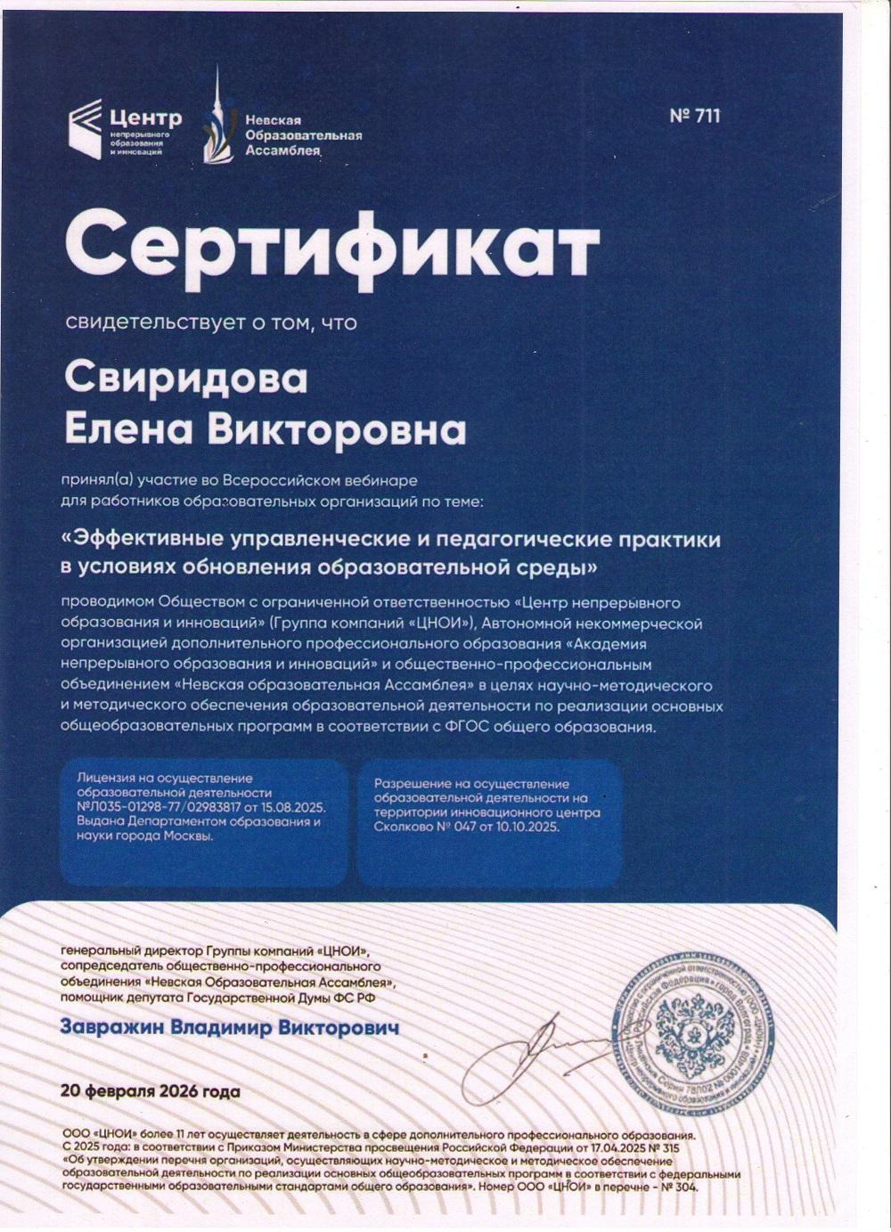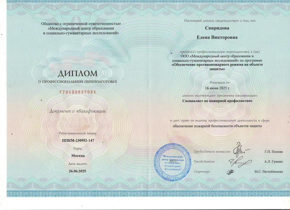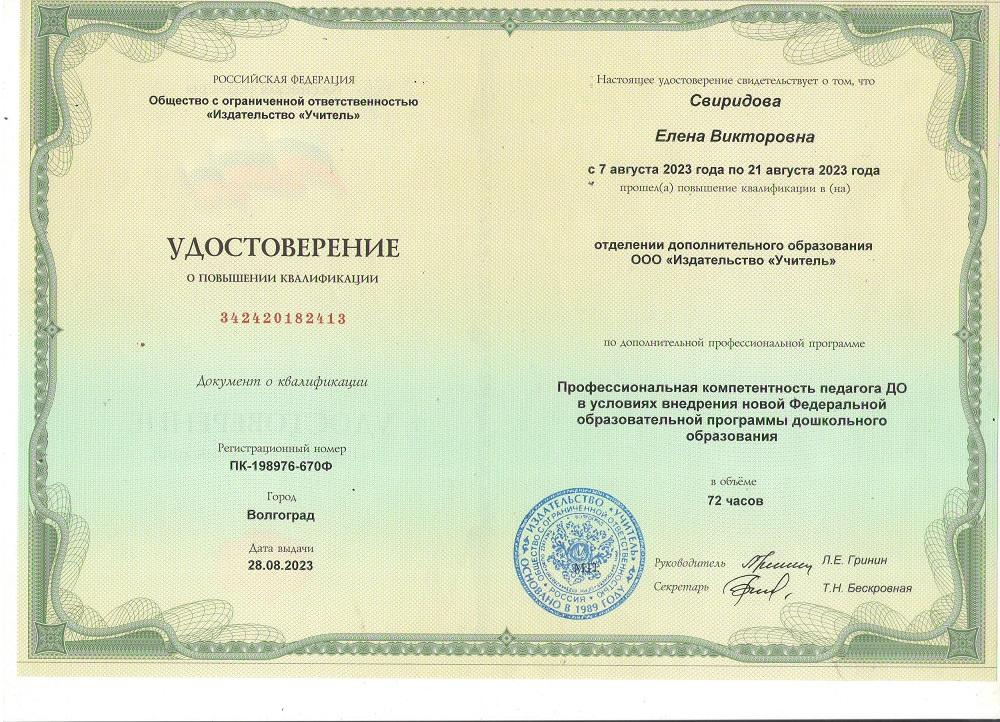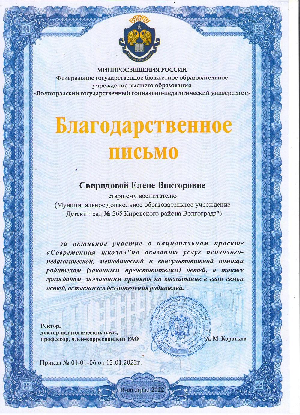 Личная страница старшего воспитателя Свиридовой Елены Викторовны