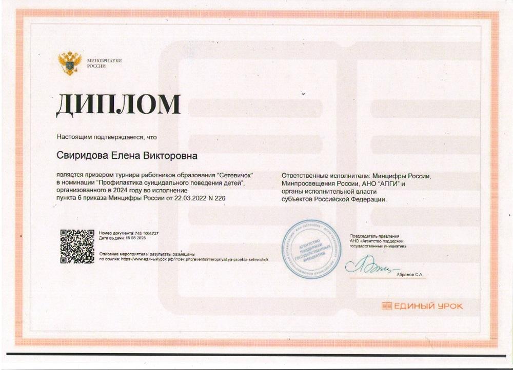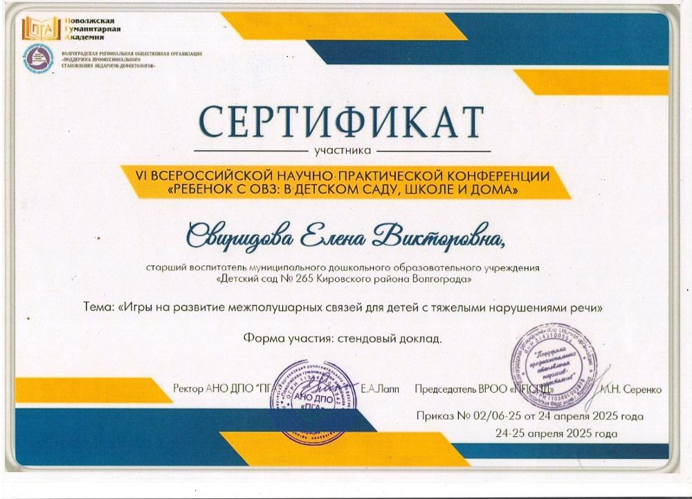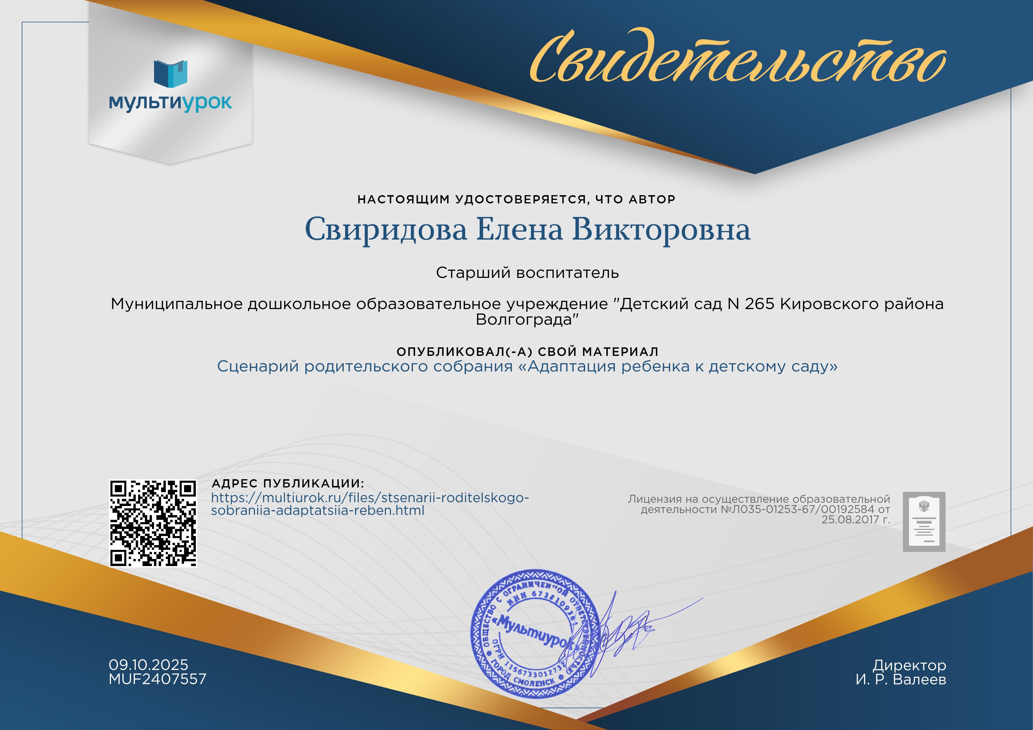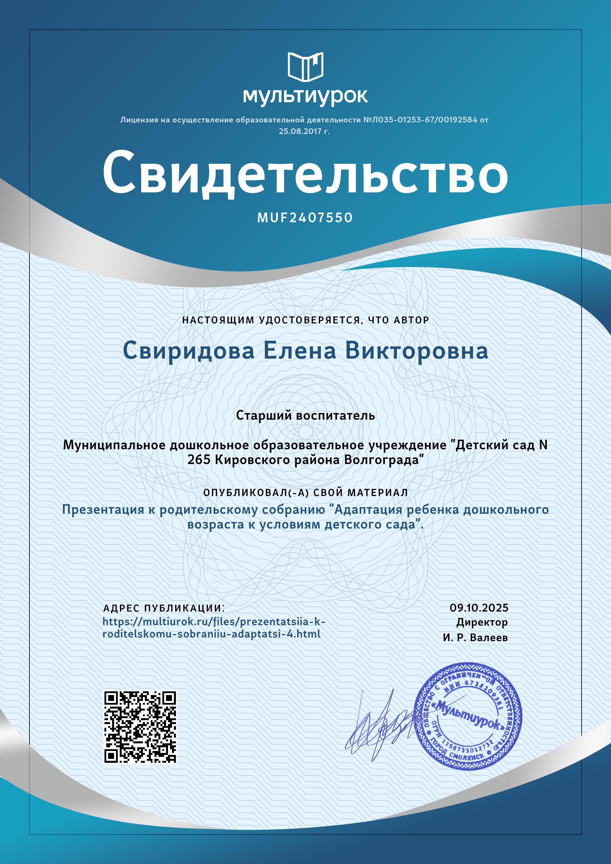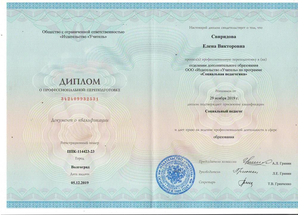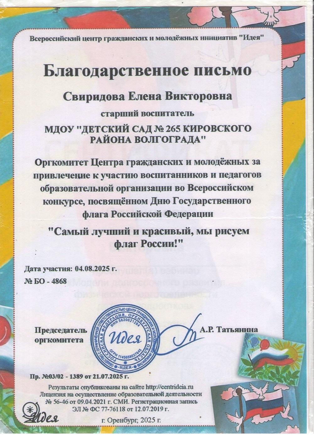 Личная страница старшего воспитателя Свиридовой Елены Викторовны