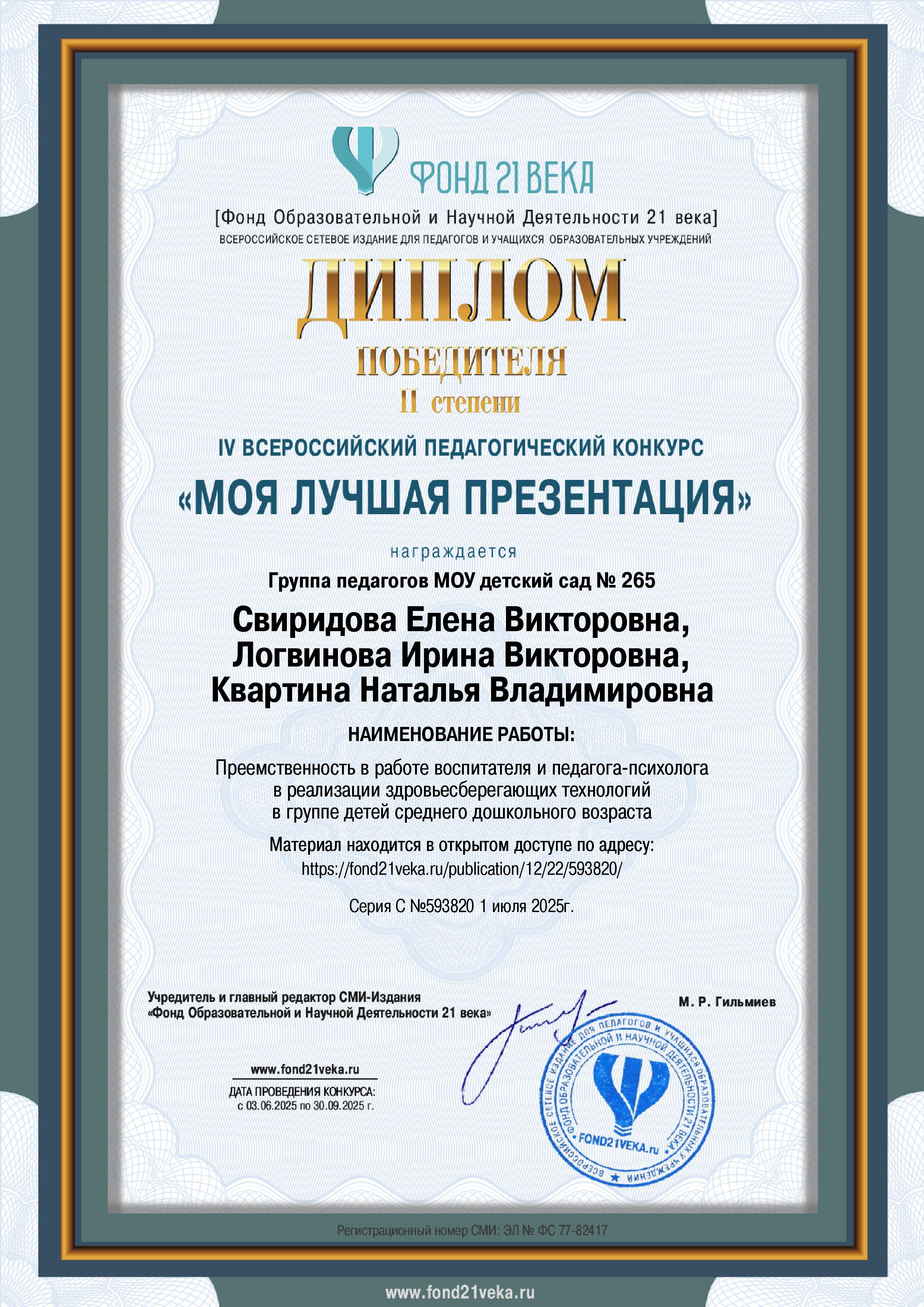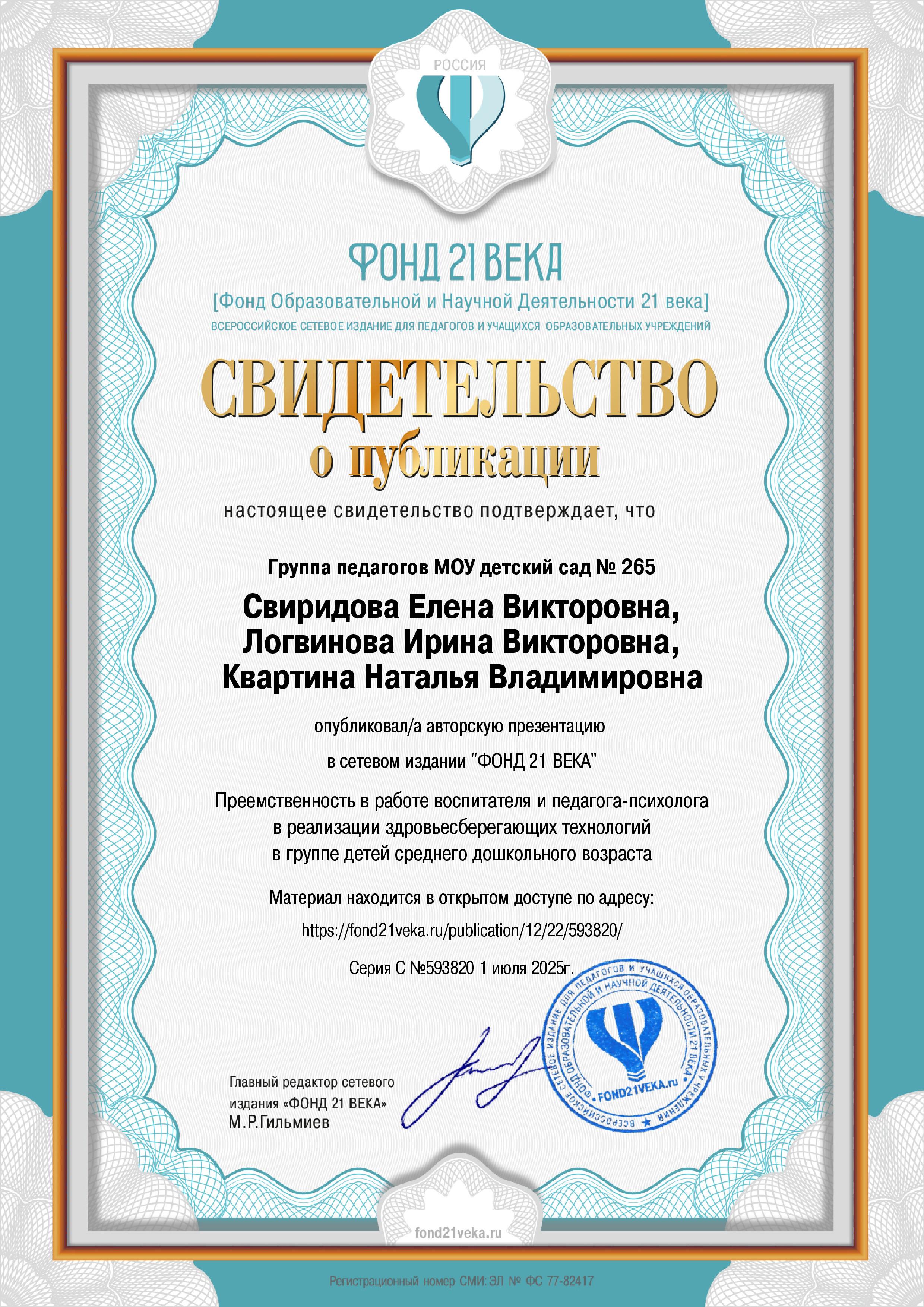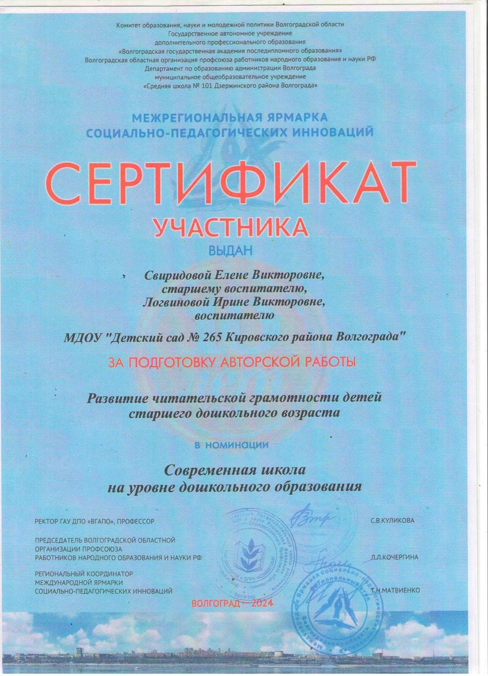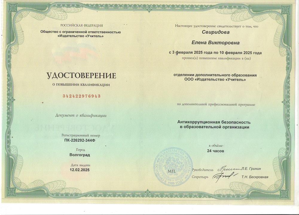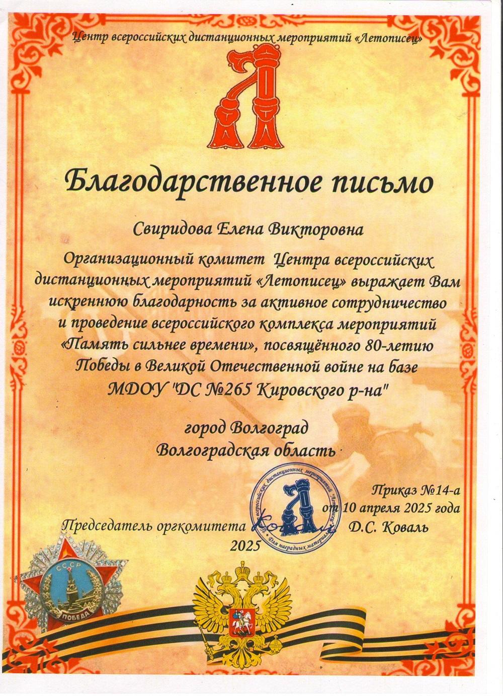 Личная страница старшего воспитателя Свиридовой Елены Викторовны
