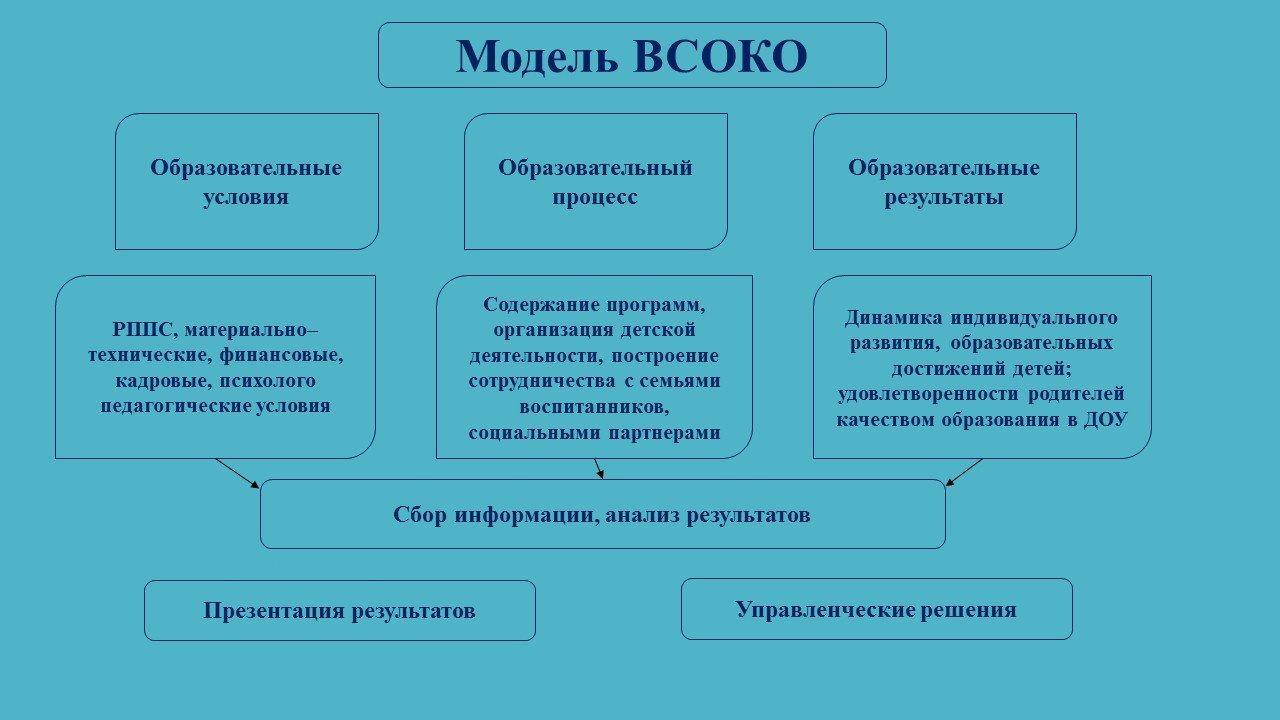 (далее – ВСОКО) предназначена для управления качеством образования в ДОУ, обеспечения участников образовательных отношений достоверной информацией о качестве образования, предоставляемого ДОУ, и о его тенденциях развития. В рамках ВСОКО осуществляется оценка качества образования, выполняемая самостоятельно ДОУ с помощью процедур мониторинга и контроля.